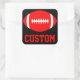 O Red Football Sticker Quadrado para o Team Party ou o Game Day Decor: Crie os seus próprios autocolantes vermelhos de futebol personalizados introduzindo o seu próprio nome de equipe ou qualquer outro texto na caixa de texto personalizada. Faz uma decoração de excelente para festas de futebol ou outros eventos divertidos de uma equipe de futebol. Você também pode clicar no botão [Personalizar] para alterar a cor do plano de fundo (atualmente definida em preto) ou ajustar o tamanho, estilo ou cor da fonte.