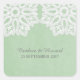 Autocolantes de casamentos de rendas Elegantes, simples e sofisticados, com um local branco, com um toque suave num fundo de papel vintage verde de menta clara. Estes adesivos clássicos e na moda são perfeitos para um casamento rústico. Fácil de personalizar com seus detalhes de casamento. Clique em "Personalizar" para encontrar mais opções de personalização.