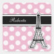 Os autocolantes quadrados de monograma cor-de-rosa aos quais você pode adicionar seu nome ou inicial. Parte da Coleção de Paris Rosa com o gosto da França, da Torre Eiffel e da design de bolinhas na moda.