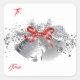Este pequeno adesivo com etiqueta de presente é mostrado com um impressão de sinos prateados de Natal festivo. Personalize este item ou comprar como está.