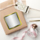 O fundo impresso na superfície de olhares cromados de prata de metal com borda prateada e dourada faz um adesivo ou selo legal e elegante para muitos usos. Personalize facilmente com seu próprio texto. É mostrado um adesivo quadrado popular.