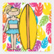 Adesivo Quadrado Vinhetas de surfista de moça loira