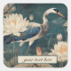 Adesivo Quadrado Vintage botanical blue crane personalizável