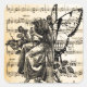 Sobreposição de ilustração antiga da fada b/w no fundo de músicas da folha de cálculo.