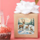 Adesivo Quadrado Vintage Reindeer Family Winter Meadow Painting
