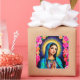 Adesivo Quadrado Virgem bonito Maria com Mãos de Oração e Rosas Gra