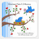 "Se você não é fazer diferença, que diferença faz?" ~Daniel J. Radcliffe. Um design colante quente e colorido com um par de pássaros azuis brilhantes, ramos coloridos de árvores e folhas, um adorável ninho florado, e palavras inspiradoras. Personalize alterando o campo de texto se quiser expressar seus próprios pensamentos ou sair conforme mostrado. Faria um presente excelente de "obrigado-você" para um voluntário especial.