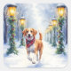 Adesivo Quadrado Watercolor Beagle Snowy Park Christmas Holiday