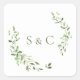 Adesivo Quadrado Watercolor Green deixa Monograma Weding
