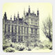 SQUARE STICKERS - Palácio Westminster no inverno - foto de arte de safra. Um dos mais icônicos marcos de Londres em condições raras de inverno de neve. Torre do palácio enquadrada por ramos de árvores nuas do parque ao lado, pelo rio Tâmisa. Uma das beleza arquitetônicas inglesas. Descobrindo a Grã-Bretanha - viagem, série de arquitetura - Londres. Fotografia original/Arte/Design por trabalho4Sonho.