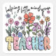 A beautiful tribute to the incredible work teachers do, this "Helping Little Minds Grow" graphic is full of charm. Featuring a whimsical, hand-drawn garden of colorful flowers growing up behind the "TEACHER" text, this design is a perfect representation of a nurturing classroom. It's an adorable and heartfelt gift for teacher appreciation, the end of the year, or for any amazing kindergarten or preschool teacher.