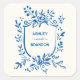 Adesivo Quadrado Whimsical French Blue Botanical Crest Wedding
