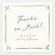 Adesivo Quadrado Whimsical Hand Desenhou Casamento Verde Obrigado