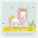 Adesivo Quadrado Whimsical Magical Unicorn Rosa Aqua Teal Princess