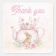 Adesivo Quadrado Whimsical Pink Bunny Teapot Floral Thank you