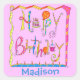 Adesivo Quadrado Whimsy Happy Birthday Name Personalizado Pink