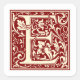 Adesivo Quadrado William Morris - Letra E Monograma Vermelho Inicia