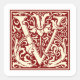 Adesivo Quadrado William Morris - Letra V Monograma Vermelho Inicia