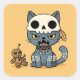 Adesivo Quadrado Witch Cat Voodoo Doll on Yellow