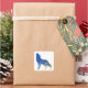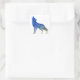 Esta design é o contorno de um lobo uivante com um gradiente de cor azul a bege e a silhueta de um dentro de árvore.