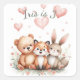 Adesivo Quadrado Woodland Animals Bear Fox Bunny Pink Hearts Girl