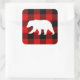 Adesivo Quadrado Xadrez de Buffalo Vermelho e Urso Branco
