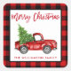 Caminhão de Vintagem Vermelha com Mola de Pincel com Árvore de Natal - Selo de Envelope de Nome da Família Feliz de Natal - Xadrez Vermelha