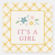 Created to coordinate with the "Sweet Floral" birth announcement collection, this sticker features the phrase "It's a Girl" placed beneath a bouquet of delicate flowers and leaves. The text can be customized, if desired. The design and text is placed over a yellow, hand-drawn gingham pattern. These pretty stickers are perfect for labeling gifts and party favors, or they can be used to seal the coordinating "Sweet Floral" self-addressed birth announcement envelopes.