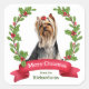 Adesivo Quadrado Yorkshire Terrier Holly Wreath Natal