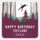Embarque numa jornada emocionante através da natureza com o nosso autocolante quadrado zípico da floresta! Voe sobre os topos das árvores com silhuetas de árvore burgundy. Fontes brancas escuras gritam 'Feliz Aniversário', misturando talento moderno com encanto natural. O texto personalizável torna cada adesivo exclusivamente seu. Junte-se a nós por diversão e crie memórias duradouras no meio das árvores. Uma aventura de aniversário ao ar livre que você não vai querer perder!