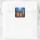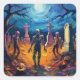 Adesivo Quadrado Zombies Rising in Moonlit Graveyard with Pumpkins