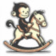 Imagem engraçada de um macaco cavalgando em um Cavalo Rocking. As cores podem ser alteradas.