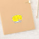 Roda fatiada de queijo amarelo. Cor de fundo personalizada. Texto personalizado.