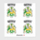 Concebidos na Irlanda, estes autocolantes mostram o nome da família em inglês, com a tradução irlandesa do gaélico por baixo e o significado do nome sob o casaco de armas.