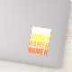 Simples design de texto colorido com o texto "Ramen, Ramen, Ramen, Ramen" em cor bege, amarela, laranja e vermelha