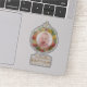 Este elegante adesivo floral para o batismo de uma menina tem uma foto de menina numa coroa de rosas selvagens com uma cruz de ouro sobre ela. Todo o texto, escrito sob a haste rosa, tem uma cor ouro amarela, semelhante à cruz dourada. O nome é escrito em um roteiro caligráfico elegante. A vintage florescente de rosas silvestres brancas, rosa, vermelhas e amarelas é do pintor e botânico belga Pierre-Joseph Redouté (1759-1840), do livro "Os Rosas" de Pierre Joseph Redouté e Claude Antoine Thory, publicado em 1817, agora no dominio público. A foto marcadora de uma menina de cor-de-rosa é de Vera Kratochvil do Dominio público Pictures e tem modelo de lançamento.