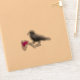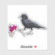 Um corvo preto segura uma orquídea cor-de-rosa neste autocolante distintivo.