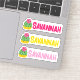 Abrace o seu amor por cactos com o nosso delicioso conjunto de três Adesivos de Nome Recortados, projetados especialmente para os entusiastas de cactos. Estes adesivos apresentam uma ilustração kawaii encantadora de um cacto adornado com uma flor rosa, irradiando alegria e simpatia. As cores brilhantes e vibrantes adicionam um toque animado a qualquer superfície. Cada adesivo pode ser facilmente personalizado com um nome à sua escolha, permitindo que você expresse seu estilo único. O nome é impresso em uma fonte negrito e caprichosa, capturando o espírito lúdico destes adesivos. Perfeitos para etiquetar cadernos, aparelhos ou pertences pessoais, estes adesivos são uma maneira divertida e criativa de mostrar o seu amor por cactos. Os três adesivos são colocados convenientemente em uma única folha, garantindo que você tenha uma variedade de opções para alegr