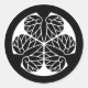 【とくがわあおい】徳川宗家においても、葵紋の蕊は初めはほとんど一定していなかった。文政年間(1818~30)御服所後藤縫殿助から幕府に書き上げた『御紋控書』によってこれを見ると、家康・秀忠・家光の三代は三十三蕊、家綱は十九蕊と二十三蕊、綱吉は二十三蕊と二十七蕊、家宣は三十一蕊と三十五蕊、(原本は家継を欠いている)吉宗は二十三蕊、家重・家治はともに十三蕊を用いた。このころから将軍家の紋章もまた十三蕊に定められたのか、その後はいずれも十三蕊を用いた。(沼田頼輔著「日本紋章学」P407)/同書には13代家定以降の図案は掲載されていない。そこで、紋典・平安紋鑑を始めとして各種の紋帳や家紋書を10冊以上調べると全てに13蕊の徳川葵が掲載されている。それらは呼称や図案に多少の相違はあるものの、蕊の配列や中央の蕊が葉柄に繋がっており、その葉柄は外輪と一体化しているという共通点がある。以上のことを踏まえながら、本図案は主に「紋の志をり」を参考に作図したものである。(2013/3/26作図)