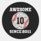 Adesivo Redondo 10º Aniversário do Lover Baseball Presente 10 Anos
