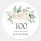 Adesivo Redondo 100ª Festa de aniversário Rosa Branca Eucalipto