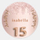 Adesivo Redondo 15 de Quinceanera, rosa de ouro, brilho rosa