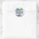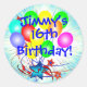 Um buquê brilhante e divertido de balões coloridos e estrelas a rebentar em outra camada de fundo de um gráfico de rebentamento de gradiente azul e branco pronto para você personalizar com qualquer nome e qualquer idade de aniversário. Insira suas informações com qualquer Aniversário do 16º nome (ou mude facilmente a idade)!" Excelente ocasião especial, vinhetas personalizadas coloridas, favores de festas ou selos de envelopes! Mostrado é o popular adesivo redondo. Ótimo para o grande e doce aniversário de 16 anos ou para bebês, crianças, adolescentes, e homens e mulheres de qualquer idade!