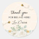 Nosso Mel Pequeno Está Virando 1! Obrigado de primeiro aniversario para garotas bonitas você favorece adesivos, com design de abelha de mel floral. Este é o tema perfeito para a sua primeira festa de aniversário. Itens correspondentes disponíveis.