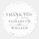 25-aniversário, obrigado de poeira prateada, seu clássico adesivo redondo. Projetado para coordenar com nossa coleção de 25 Aniversário de Prata. Apresentando delicadas poeiras prateadas. Personalize com seus nomes em letras quentes de prata. Projetado por Thisnotme©