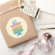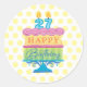 Feliz bolo colorido de aniversário com adesivos redondos amarelos de bolinhas. Personalizado para um aniversário de 27 anos. Use estes adesivos para colocar os toques finais em todos os seus desejos de aniversário. Feche seus convites ou obrigado que você envolve. Use como rótulos para tratar bolsas. Adicionar a sucatas de páginas e fotografias para sotaques.