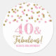 Adesivo Redondo 40 e Fabuloso Bebê Rosa Dourado Confetti
