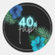 Adesivo Redondo 40 & Fab Neon Blue Silver Black Tropical Birthday