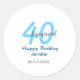 Adesivo Redondo 40th & renewed birthday name date blue bold number