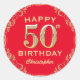 Adesivo Redondo 50ª Festa de aniversário Vermelha e Dourada imagem